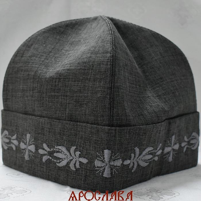 АРТ2796. Скуфия русская, летняя. Ткань меланж. На отвороте вышивка.