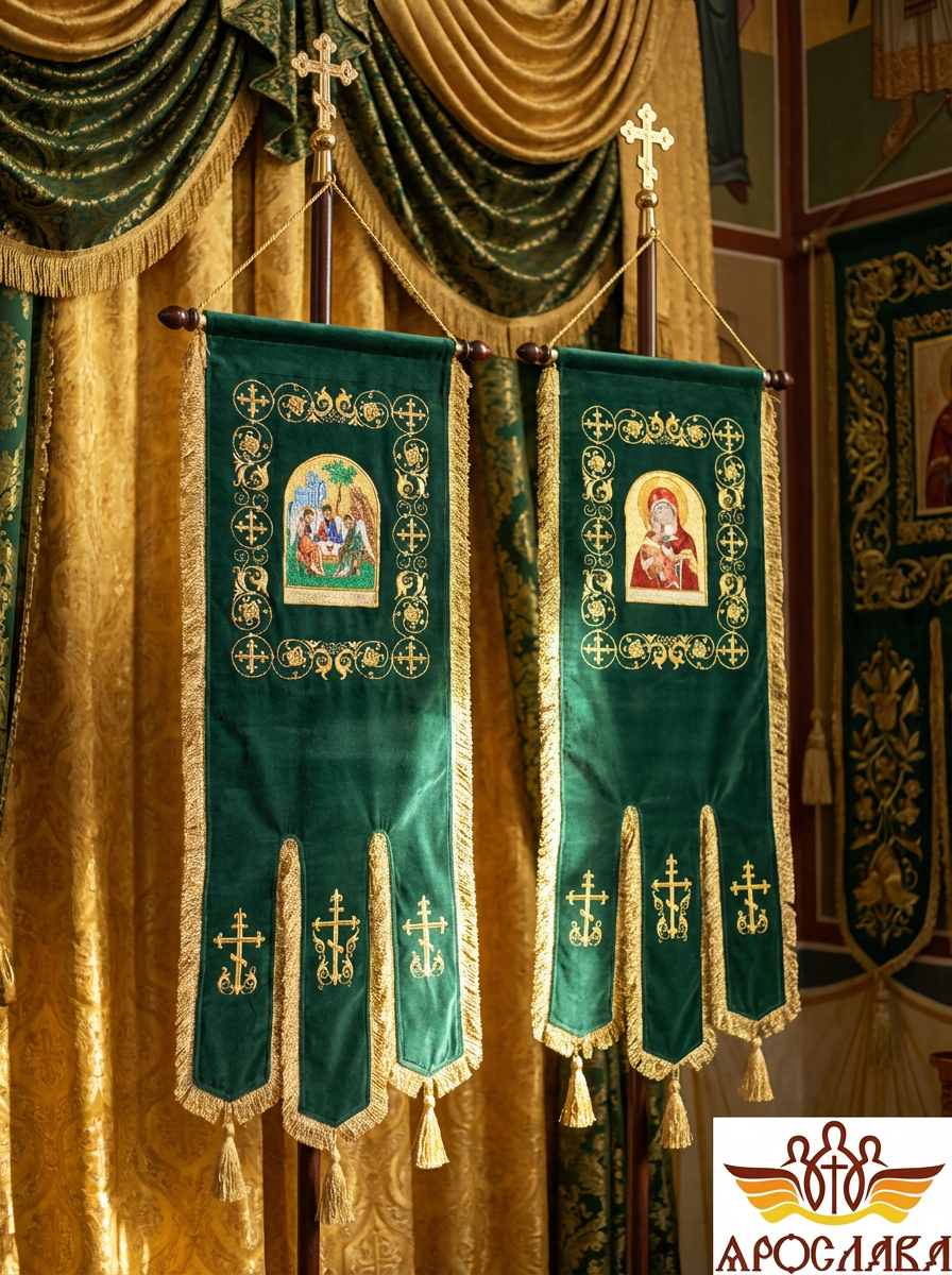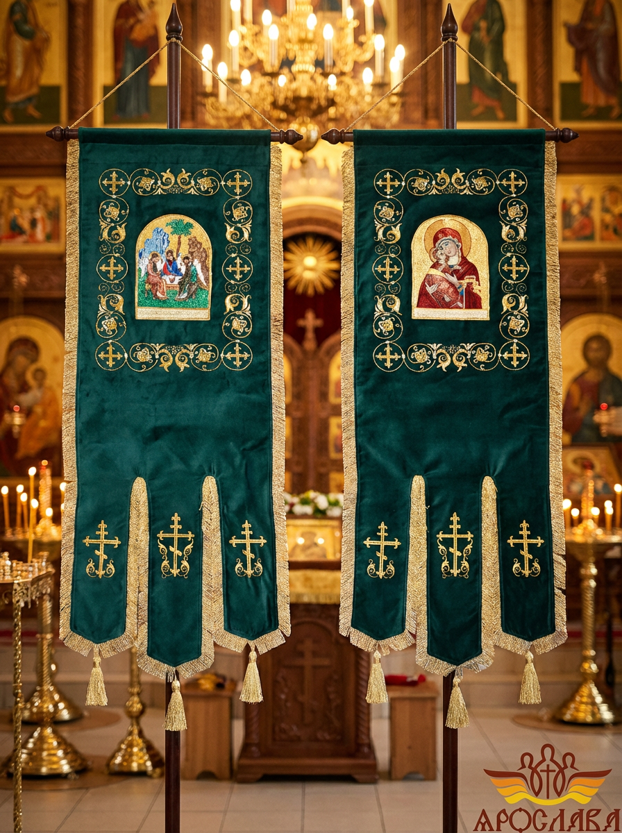 - Древко приобретается отдельно. Для покупки перейдите в раздел Древко для хоругвей.