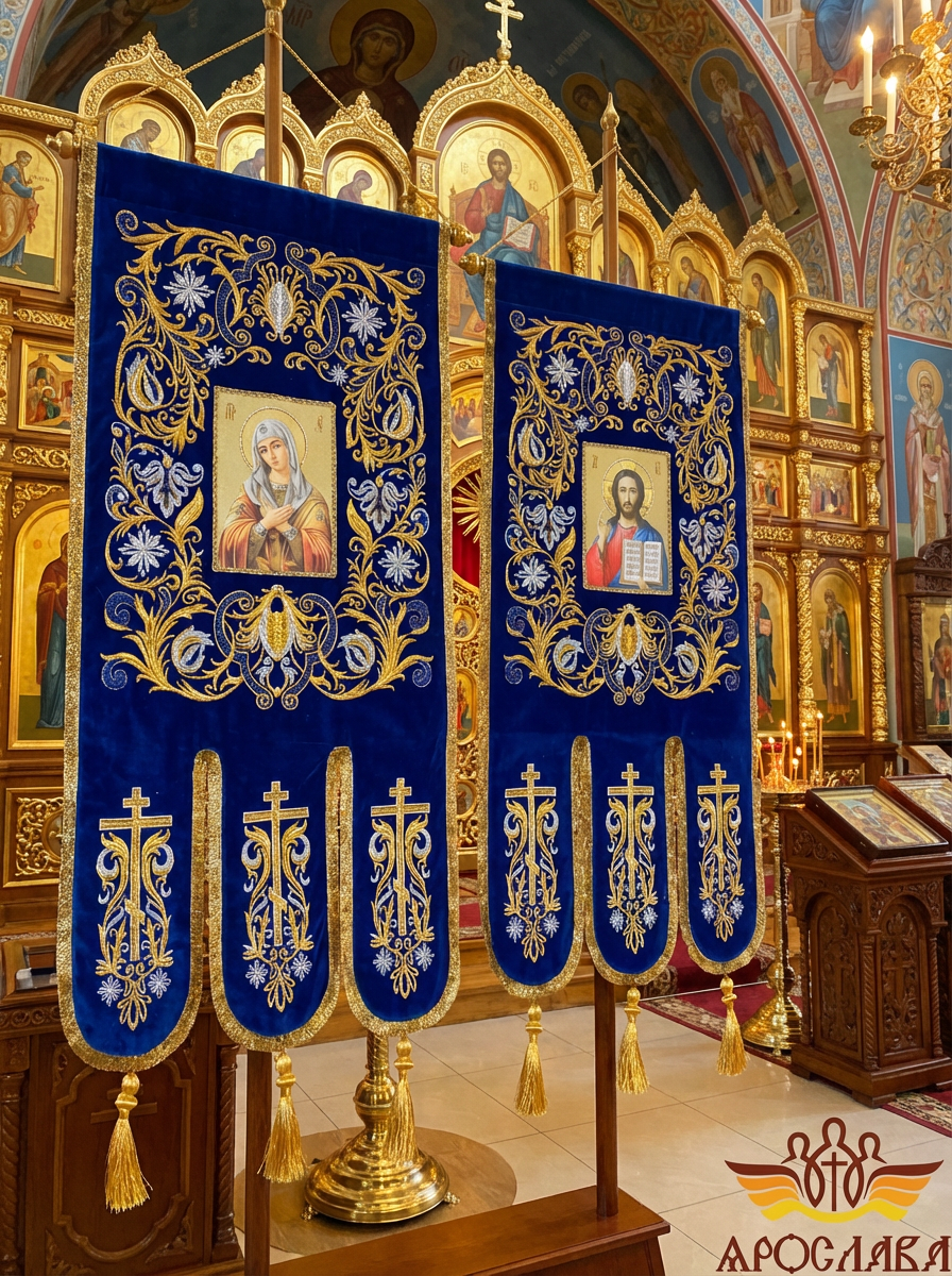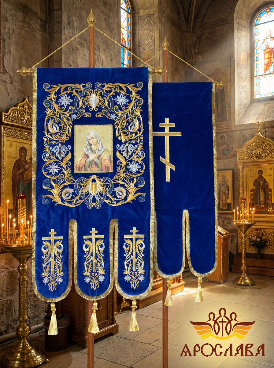 - Древко приобретается отдельно. Для покупки перейдите в раздел Древко для хоругвей.