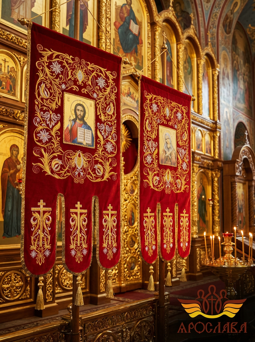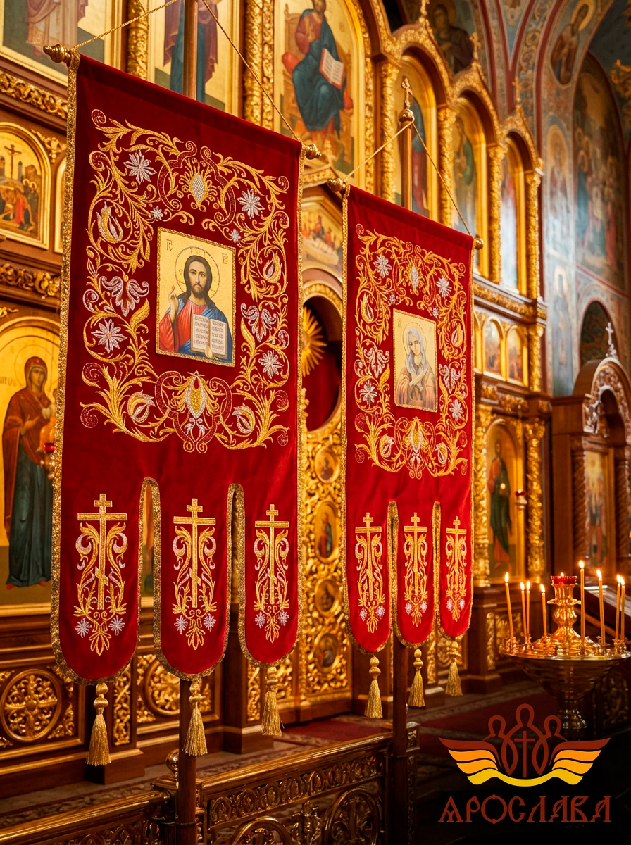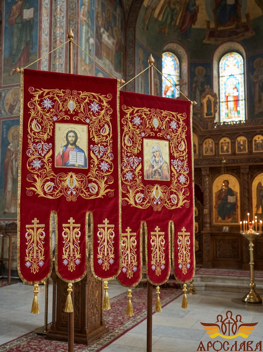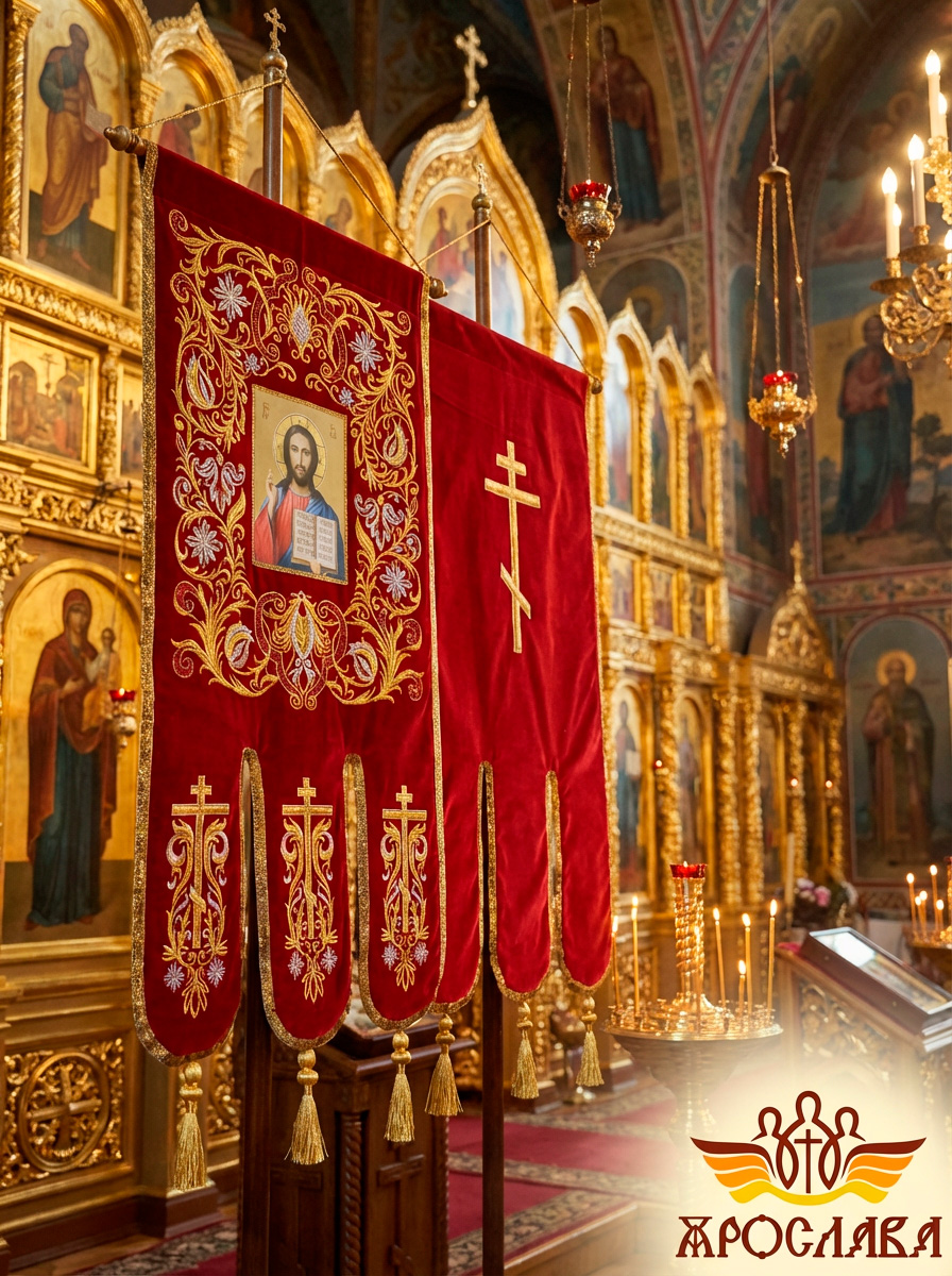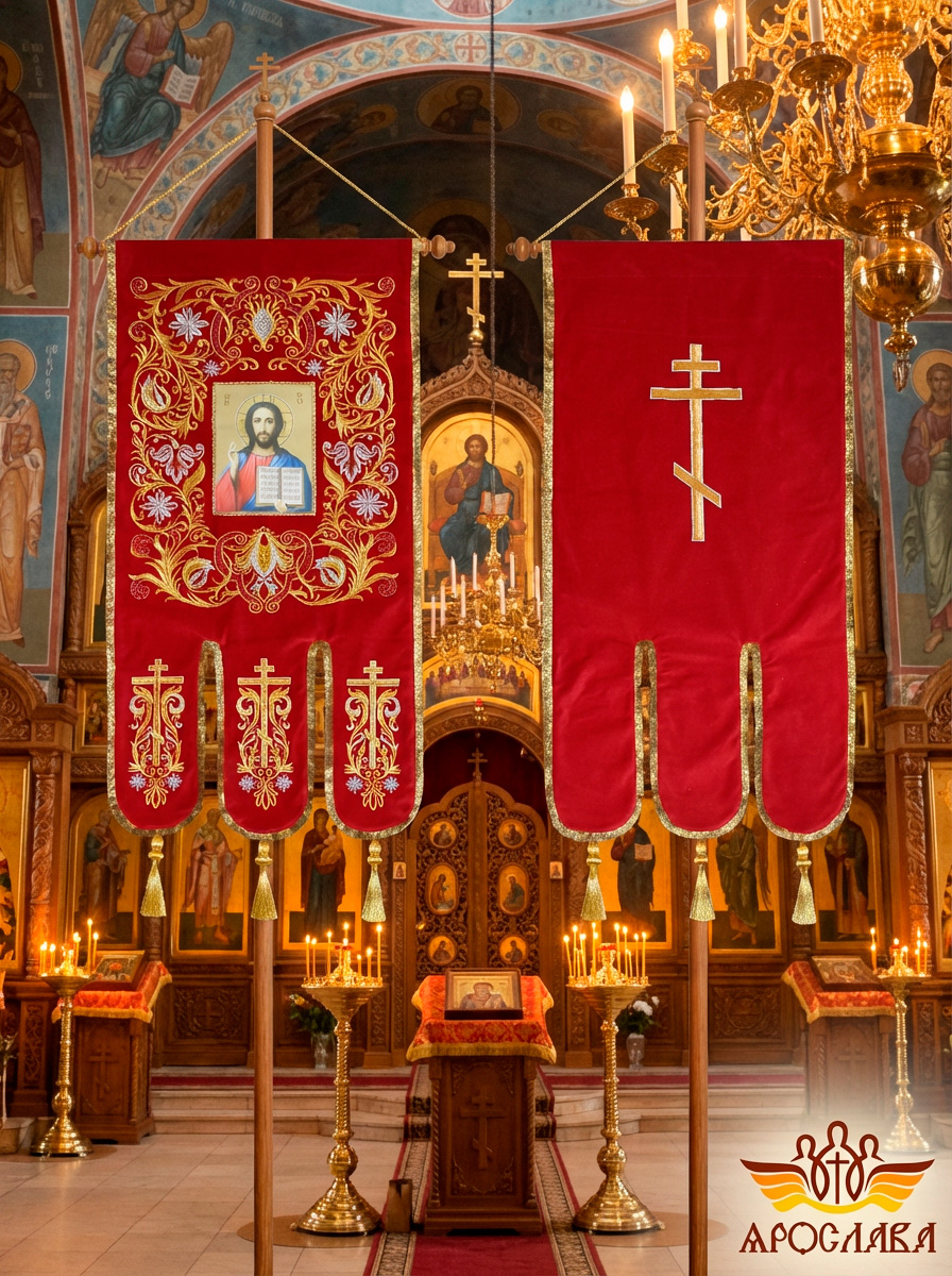 - Древко приобретается отдельно. Для покупки перейдите в раздел Древко для хоругвей.