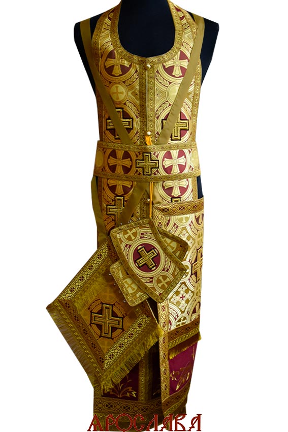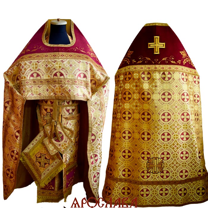 АРТ2788. Риза шелк Самсон. Комбинированная с вышивкой рисунок Благородный: власяница, окошки епитрахили, низ набедренника.