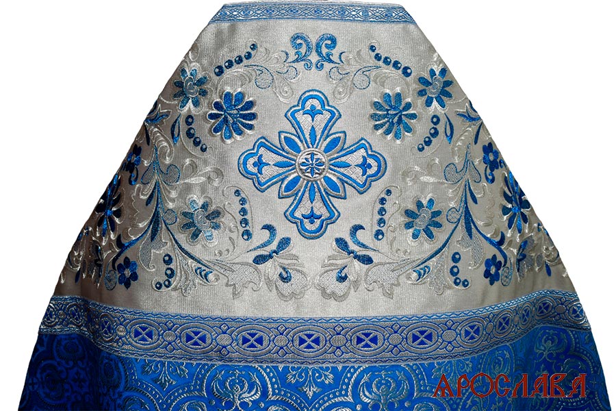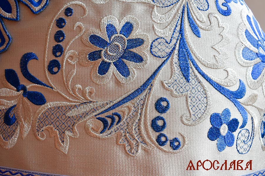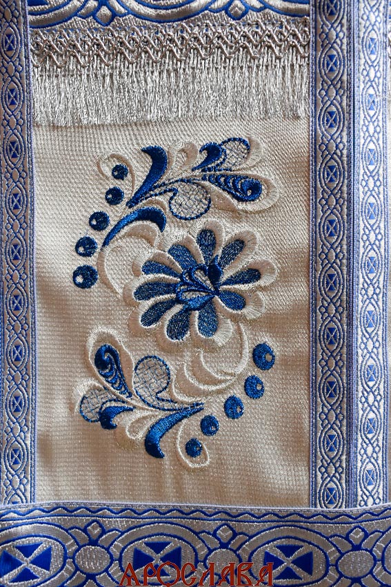 АРТ2832. Риза парча Василия. Комбинированная с вышивкой рисунок Барбарис: власяница, окошки епитрахили, низ набедренника. Вышивка выполнена на однотонной парче.