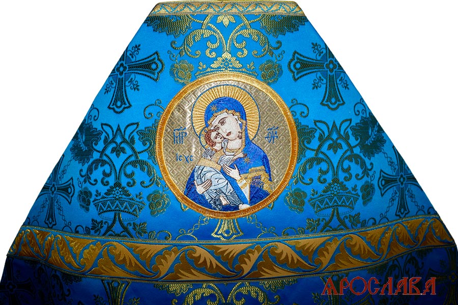 АРТ2789. Риза парча Слуцкий, отделка цветной галун. Вышитая икона Владимировская Божия Матерь.