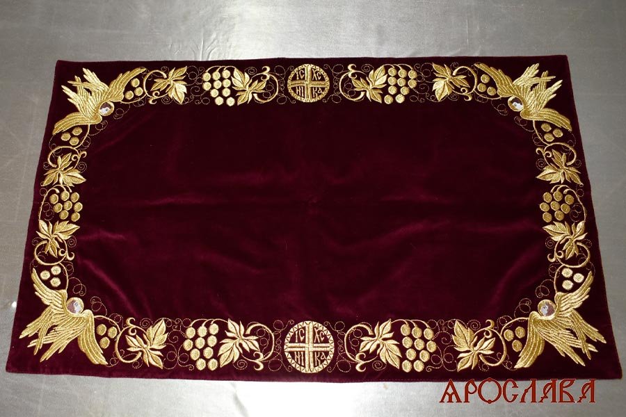 АРТ2777.Плат на жертвенник бордовый с вышивкой Ника с херувимами. Размер 70см*50см.