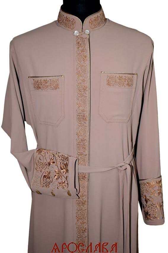 АРТ2780. Подрясник-платье основа греческая. Вышитый рисунок Виноград увеличенный:ворот, карманы, планка(полностью), манжеты.Кант:ворот,карманы,манжеты Ткань креп-шелк.
